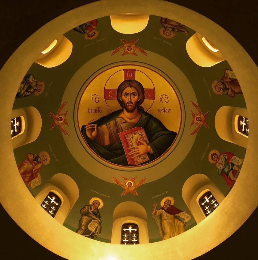 The large dome icon usually shows this title of Jesus, meaning "Ruler of All"?