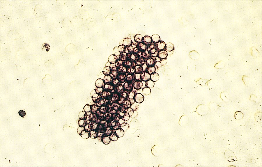 A 33-year-old man is evaluated for asymptomatic microscopic hematuria. Urinalysis is performed.