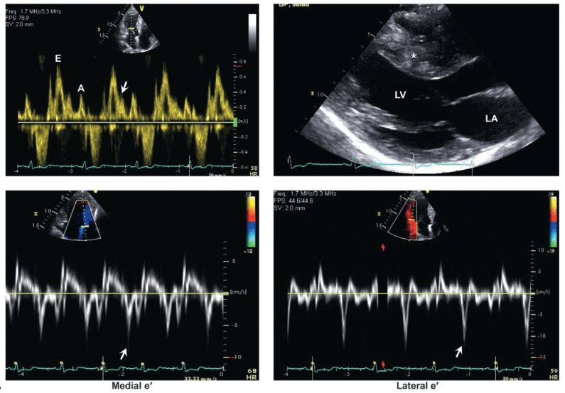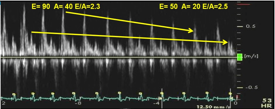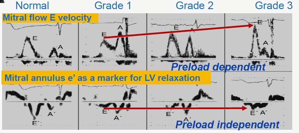 65yo M with ADHF is diuresed aggressively and goes from grade 3 to grade 1 diastolic dysfunction. Echo shows no change in this diastolic function parameter.