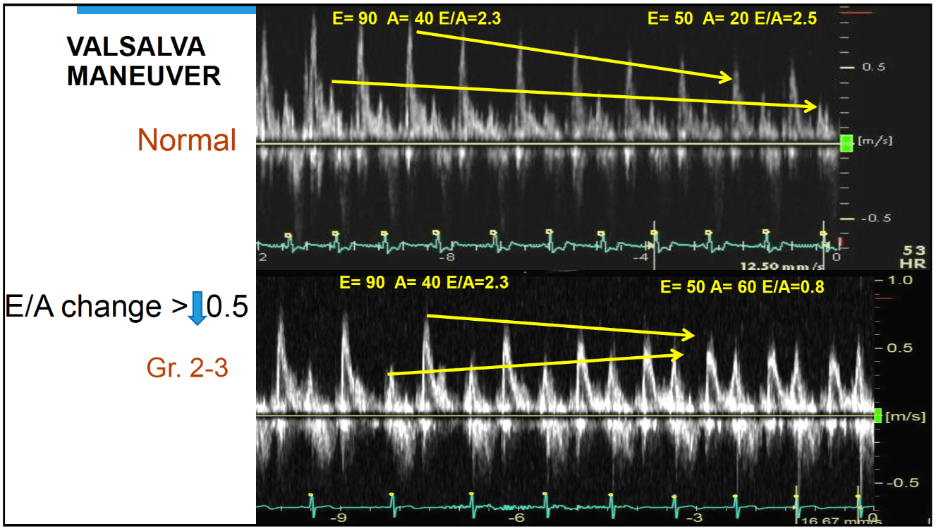 The diastolic function when there is no significant change in E/A with Valsalva maneuver.