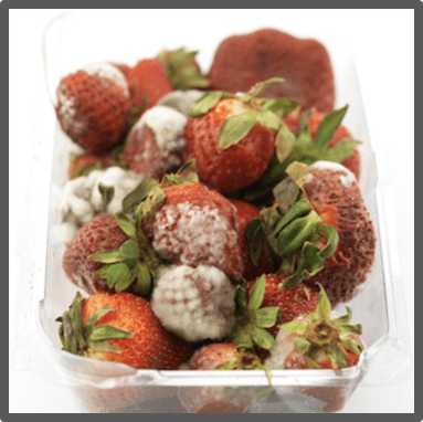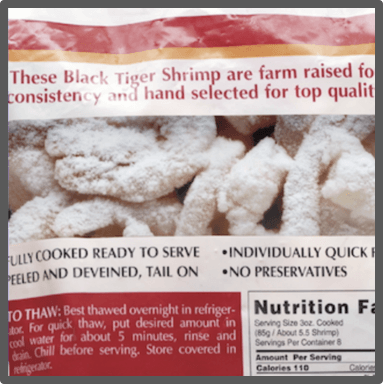 Ice crystals mean the shrimp went into the danger zone and might make us sick.