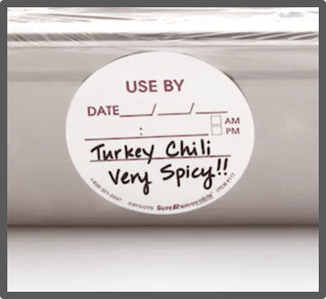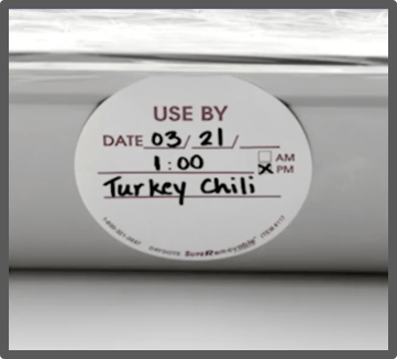 The food is labeled with the name of the food, when it was packed and date it should be use by.