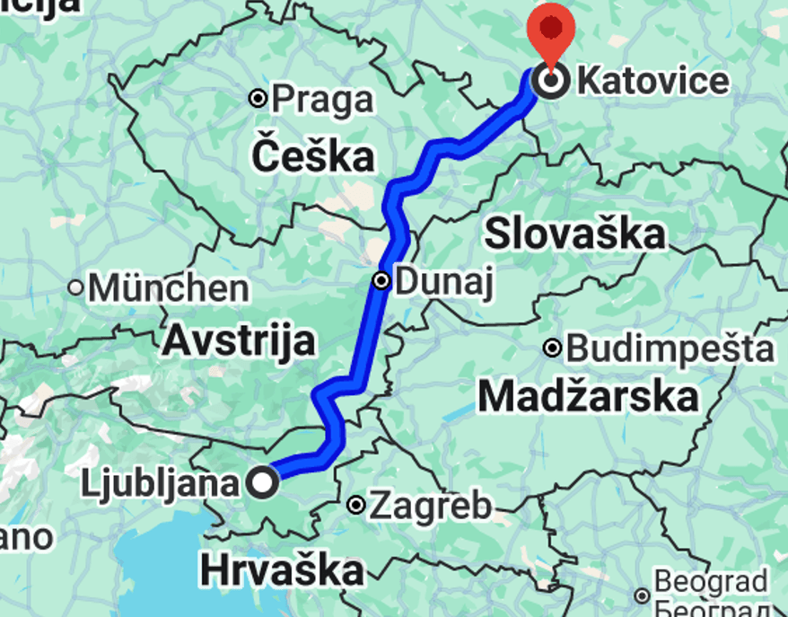 Ile zajmuje podróż samochodem z Katowic do Lublany?