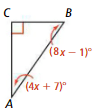 Suppose there is a segment AC, with point B SOMEWHERE in between. The length of segment AB is 5x + 4, and the length of segment BC is 8x - 3. If the entire length of AC is 79, what is the length of AB?