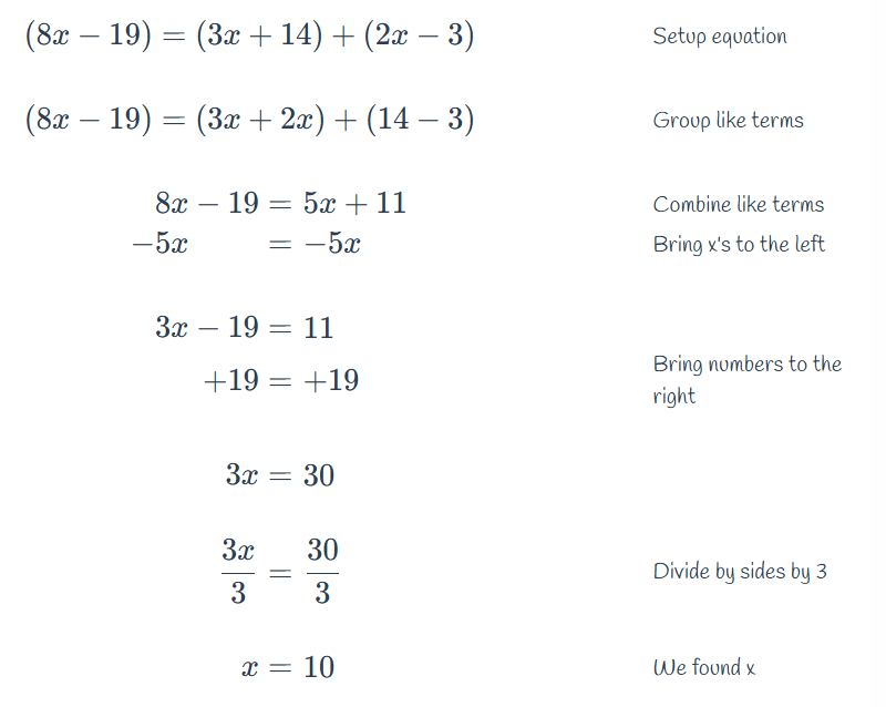 Solve for x.
