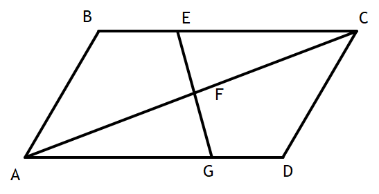 Given: ABCD is a parallelogram and AFC is the diagonal.