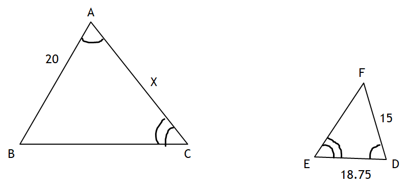 <C = 120 degrees, <F = 15 degrees, AB=20, EF=10 and AC =8