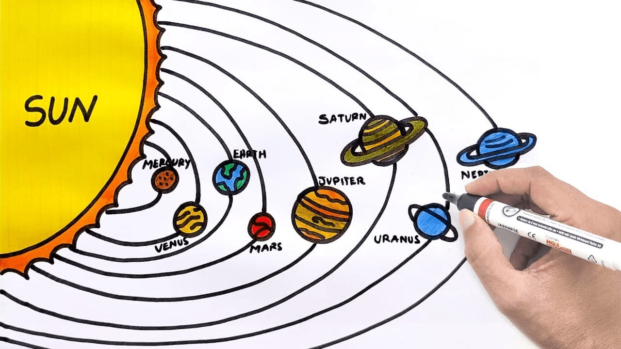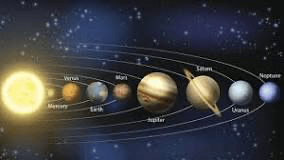 The path that an object takes as it goes around another object. The closer that a planet is to the Sun the shorter the distance.