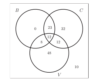 Denise conducts a survey about food- students are asked which of three meals they would eat. Out of 145 students: