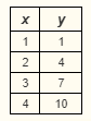 Which equation expresses the relationship between the pairs of values of x and y shown in the table below?