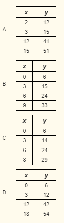 Which function table describes points on the graph of the equation ![]()