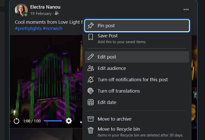 Pin Post: This lets you pin a post to the top of your profile as the first one that people see.