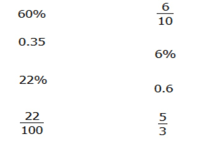 Jaimel scored 22 total points in Saturday's basketball game.  He made 3 out of 5 free throws.  Which numbers below are equivalent to 3/5 ?  Select ALL Correct answers.