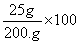 A solution contains 25 grams of KNO3 dissolved in 200. grams of H2O. Which numerical setup can be used to calculate the percent by mass of KNO3 in this solution?