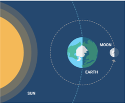 What stage of the lunar cycle is represented by the positions of the earth-sun-and-moon
