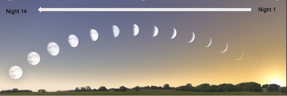 c. the Moon orbits the Earth so the angle of the Sun’s reflection changes.