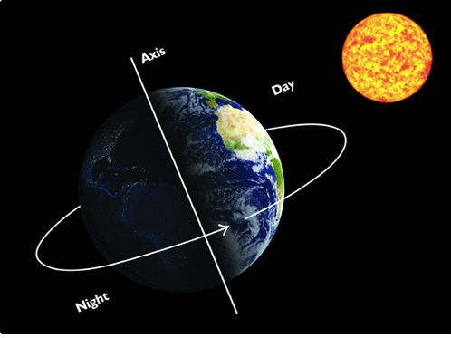 b. The earth is spinning. It takes 24hrs to make one full spin.