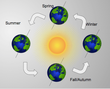 The sun changes position each season because of Earth's tilt and orbit around the sun.