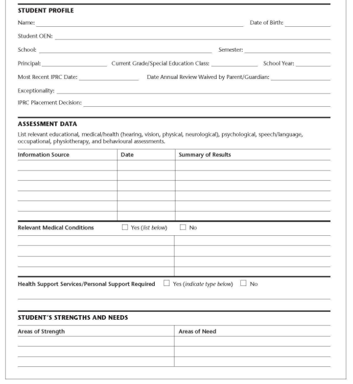 In Ontario, some students with special needs are formally identified as exceptional by an Identification Placement and Review Committee (IPRC), which is made up of at least three people, one of whom must be a principal or superintendent.