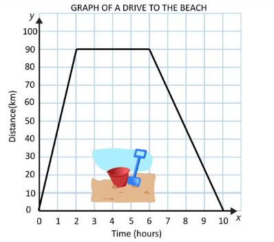 The graph shows a family's trip to the beach. How long did the family stay at the beach?