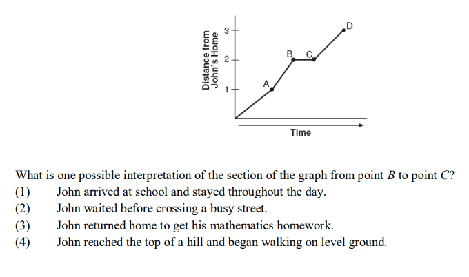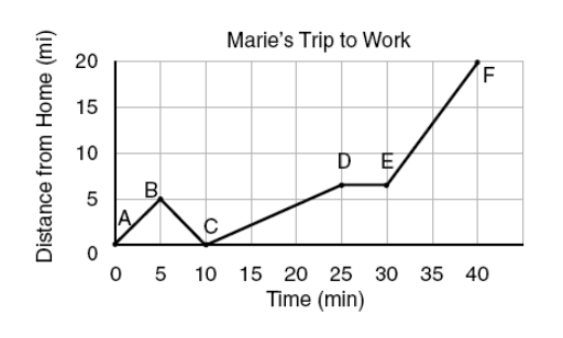 Below is a graph of Maria's trip to work. Locate the point when she realized she forgot something and had to go back home.