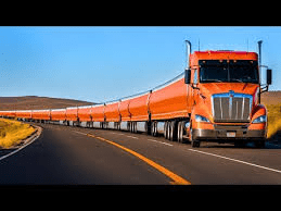 (Sie sind gigantische Lastwagen, die aus einer Zugmaschine und mehreren Anhängern bestehen.)