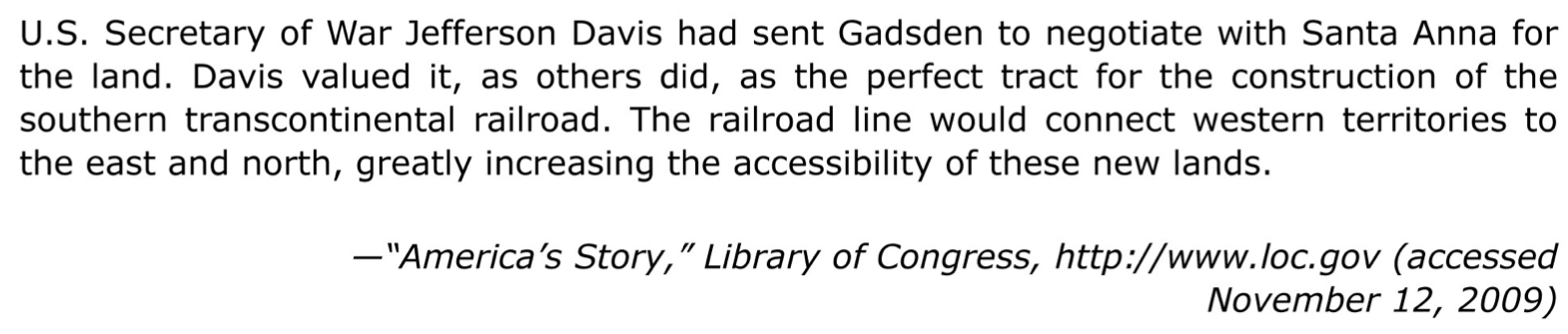 According to the excerpt above, the Gadsden Purchase was intended to —