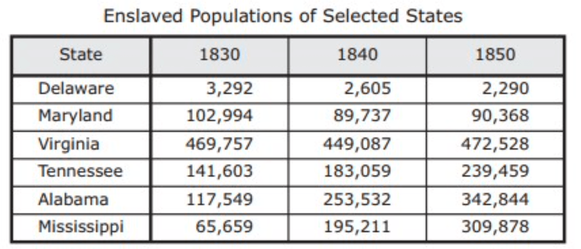 A  Slaves from the Upper South were moved to the Lower South to work on cotton plantations.