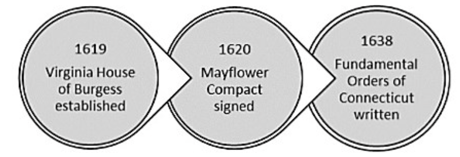 19 The events in the timeline affected the development of government in the thirteen colonies by —