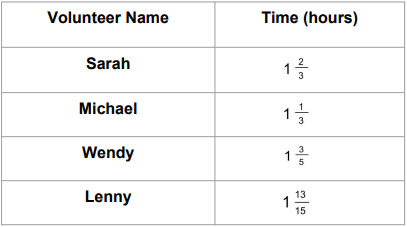 (6.2D) The table below shows the amount of time each of the volunteers painted on a project.