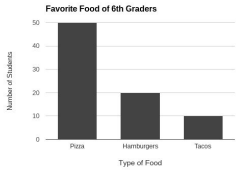 (6.4B) Mrs. Strickland asked some 6th graders to choose their favorite food from the choices of pizza, hamburgers, and tacos. The results of the survey are shown in the graph.