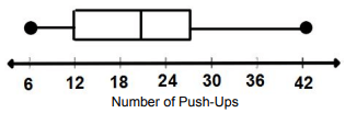 (6.13A) Students in PE class recorded the number of push-ups they could do in one minute. The box plot shows the summary of the results.