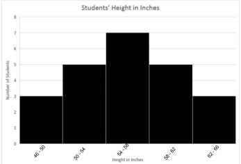(6.12C) The heights in inches of a 6th grade class are listed in the histogram below.