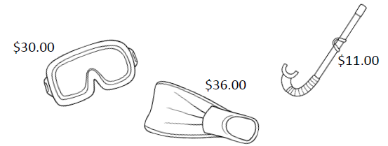 Donovan's Swim shop notices that customers often purchase the items below and decided to start offering a bundle price. If the items below are purchased together, customers save 15%. How much will the bundle cost?
