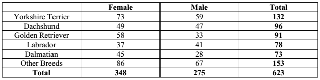 The greater of the two: percent of males who like golden retrievers and the percent of people who like golden retrievers who are males.
