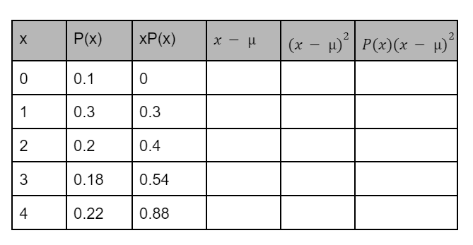 Given the information in the probability distribution below, calculate the variance.