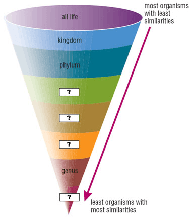 To help us make sense of living things, they are divided into groups. Identify the correct order of grouping from broadest to most specific.