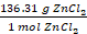 This is the amount (in grams) of zinc chloride (molar mass = 136.1 g) produced from the reaction of 202.7 grams of lithium chloride (molar mass = 42.39 g) and an excess of zinc.