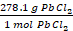 This is the amount (g) of lead chloride (PbCl2) formed if 135.8g of sodium chloride reacts with 95.7g of lead(II) in a single replacement reaction.