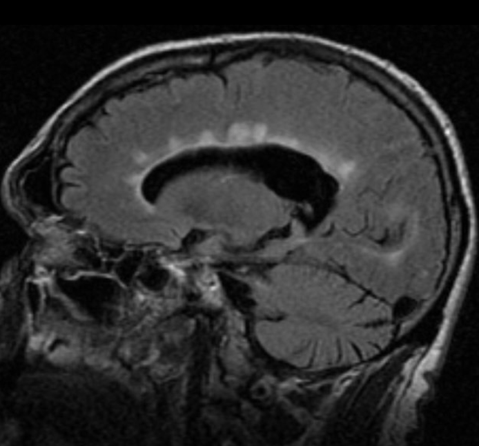 *ring, ring* "Hi, it's Trauma. We want to consult a patient who was 'williando' at the Martinez Nadal and fell. We ordered an MRI and are concerned about a stroke." After seeing the image, you tell the resident that the imaging pattern is most consistent with this disease.