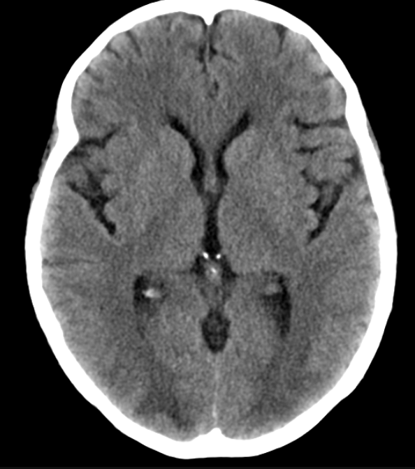 78 y/o F with history of HTN, asthma, and breast cancer s/p resection and radiotherapy presents with AMS, dysarthria, nausea, and vomiting. The following image suggests that the patient may have this pathology.