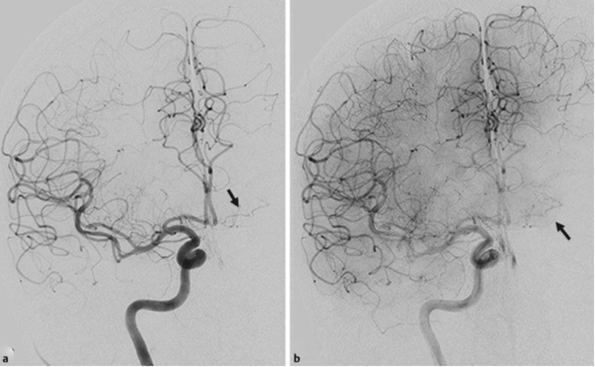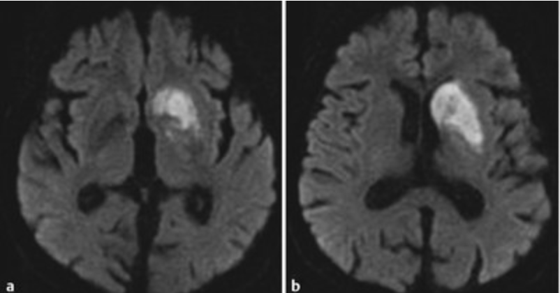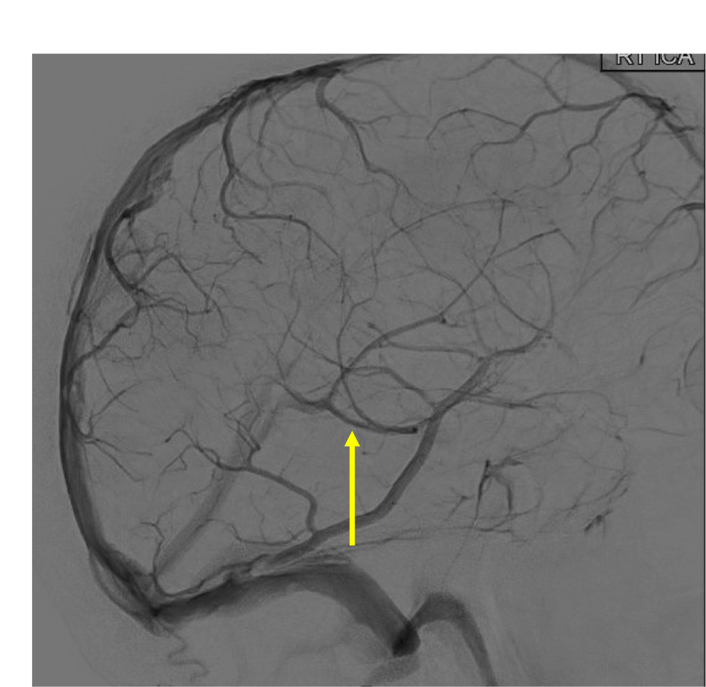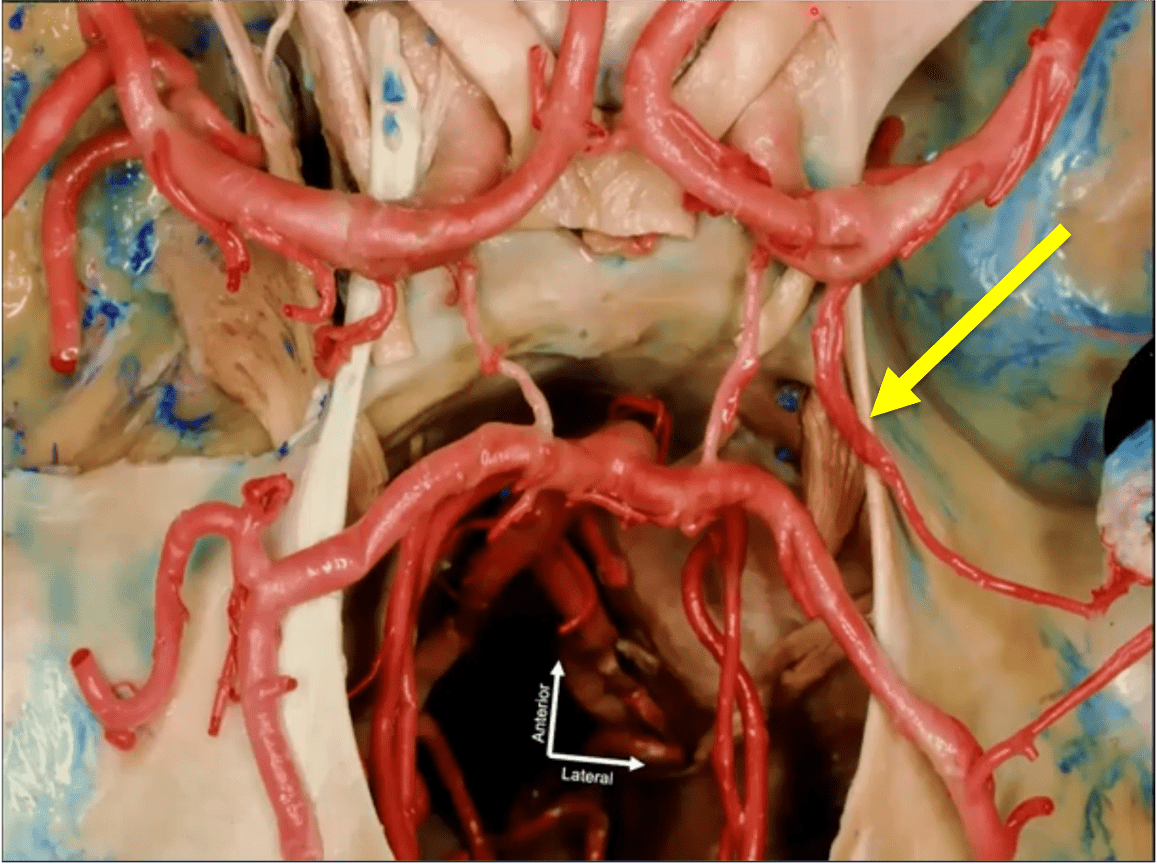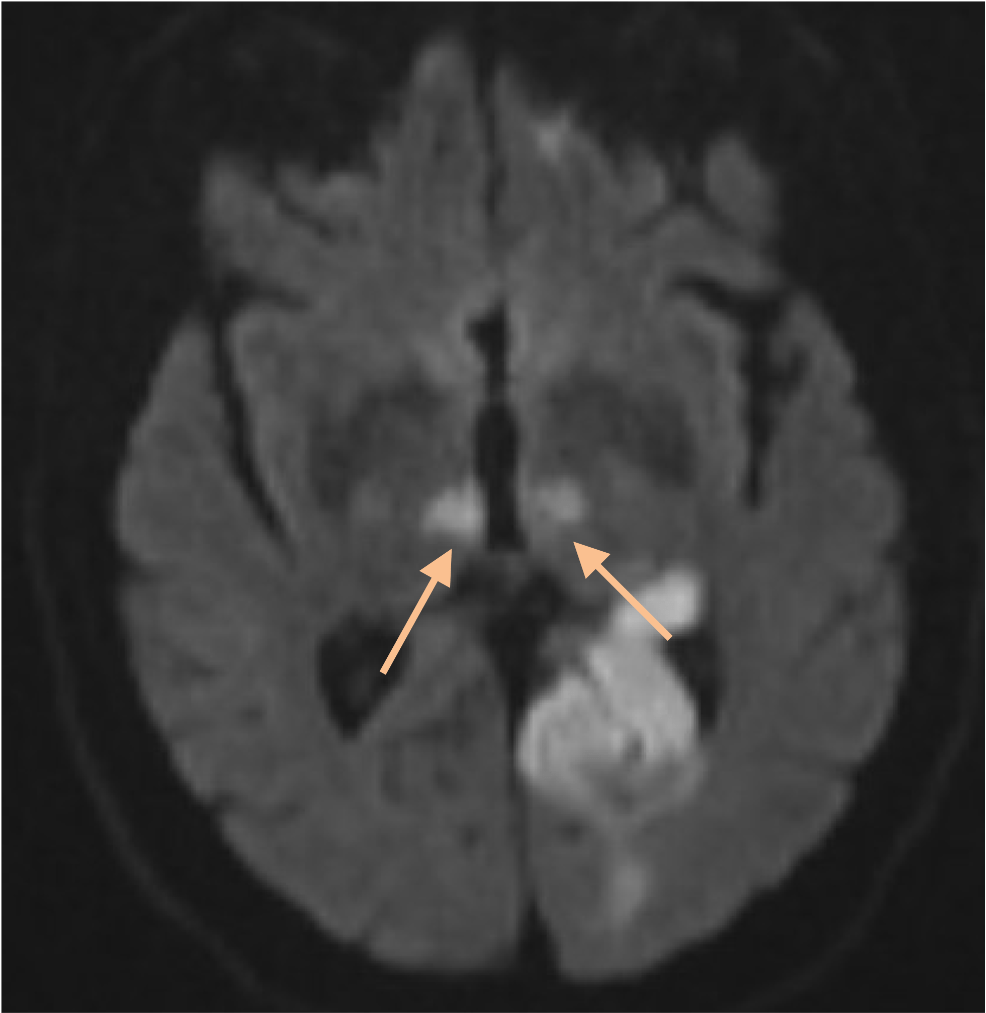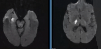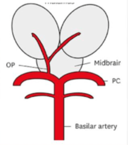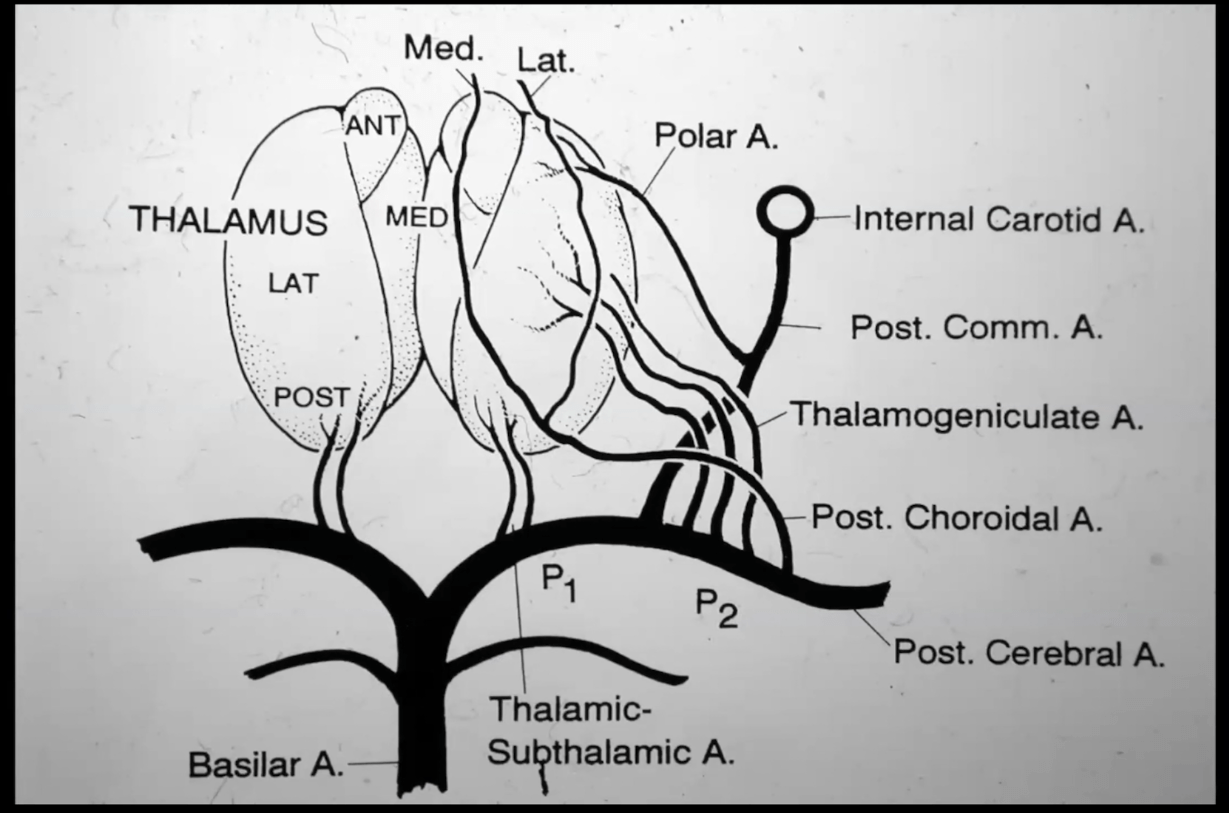 Lateral thalamic strokes, such as the R thalamic stroke shown below, are typically caused by occlusion of these perforating arteries that arise from the P2 segment of the PCA: