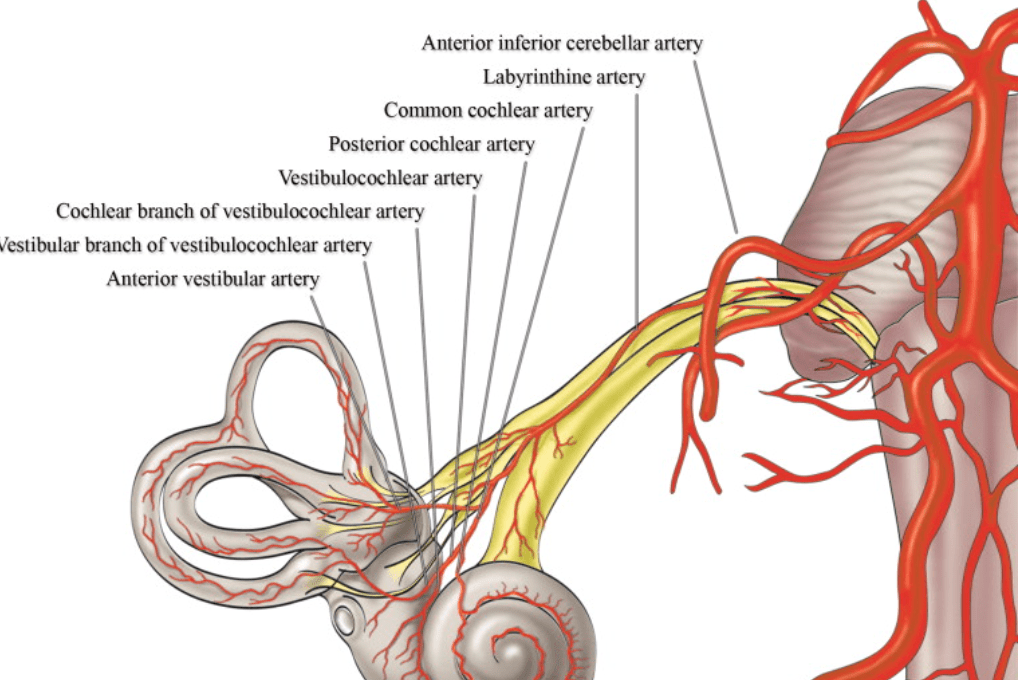Occlusion of which artery can cause the rare manifestation of unilateral hearing loss in the setting of stroke?