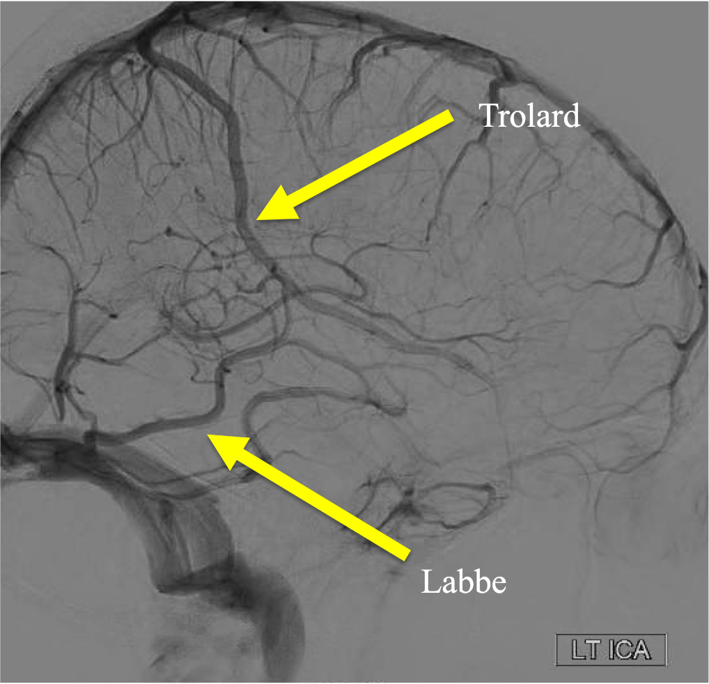 On the venous phase of this lateral L ICA injection, name the superficial vein: