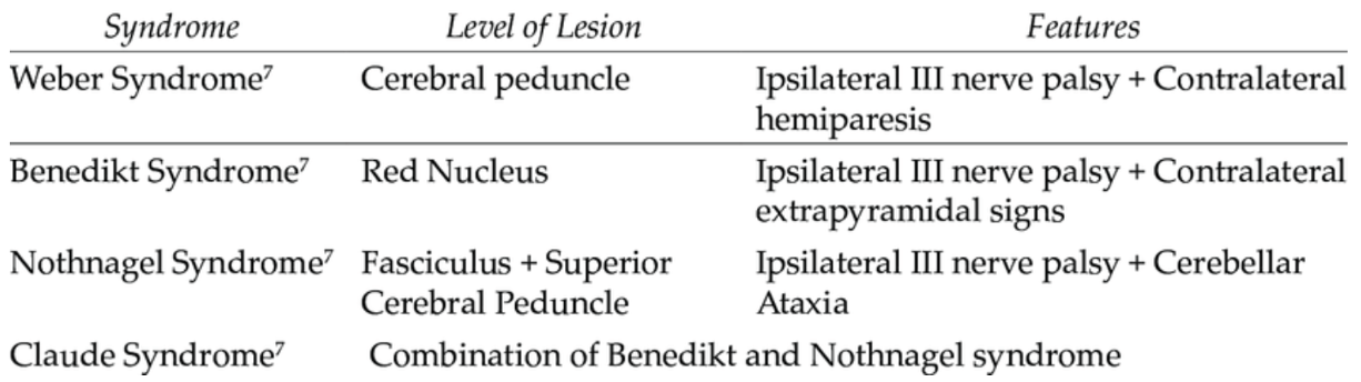 A patient presents with R eye down and out, unsteady gait, with L arm tremulous movements. Which midbrain syndrome is this?
