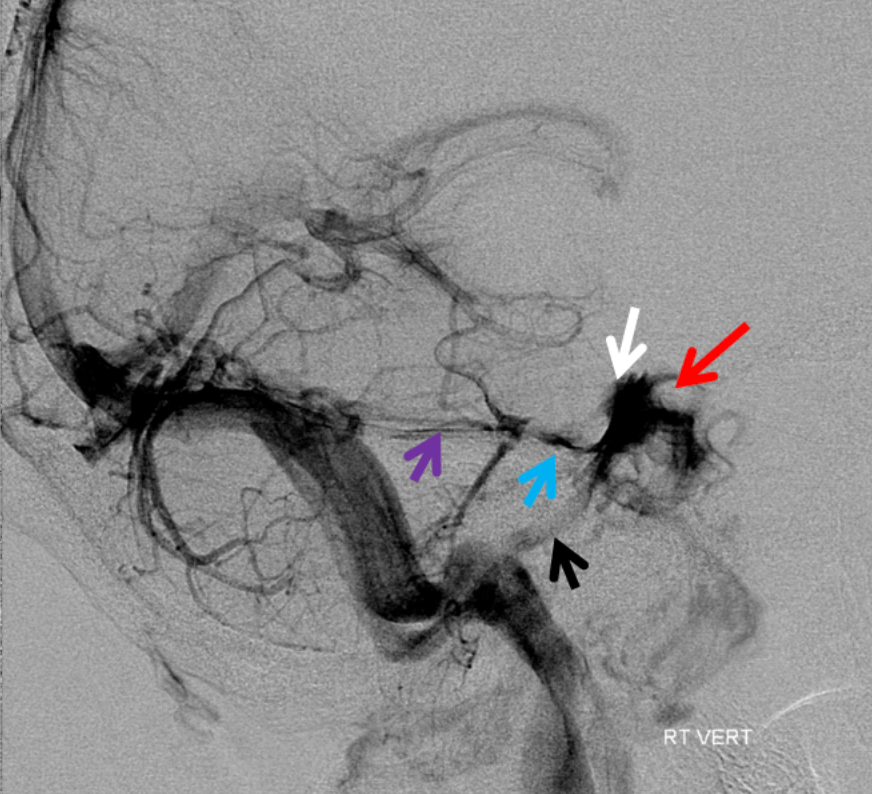 On the venous phase of this lateral R vert injection, name the purple arrow: