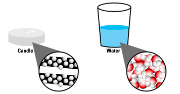 While decorating for a family party, a student decides to put floating candles in the backyard fountain. Interested in why the candles can float in the first place, she decides to look at molecular models for candle wax and water.