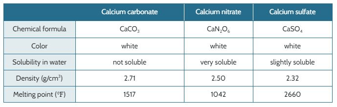 The table below shows the properties of the calcium carbonate and different types of acid rain.