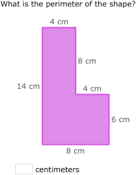 Perimeter = 14 + 4 + 8 + 4 + 6 + 8 = 44 cm