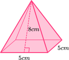 Find the surface area of a pyramid with a square base with side lengths 4 in and slant height 5 in.
